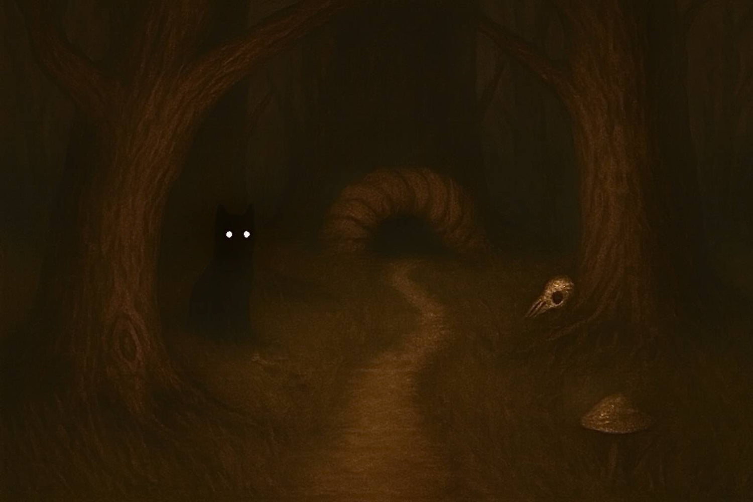 Deep in the moss and mushrooms, something purrs.