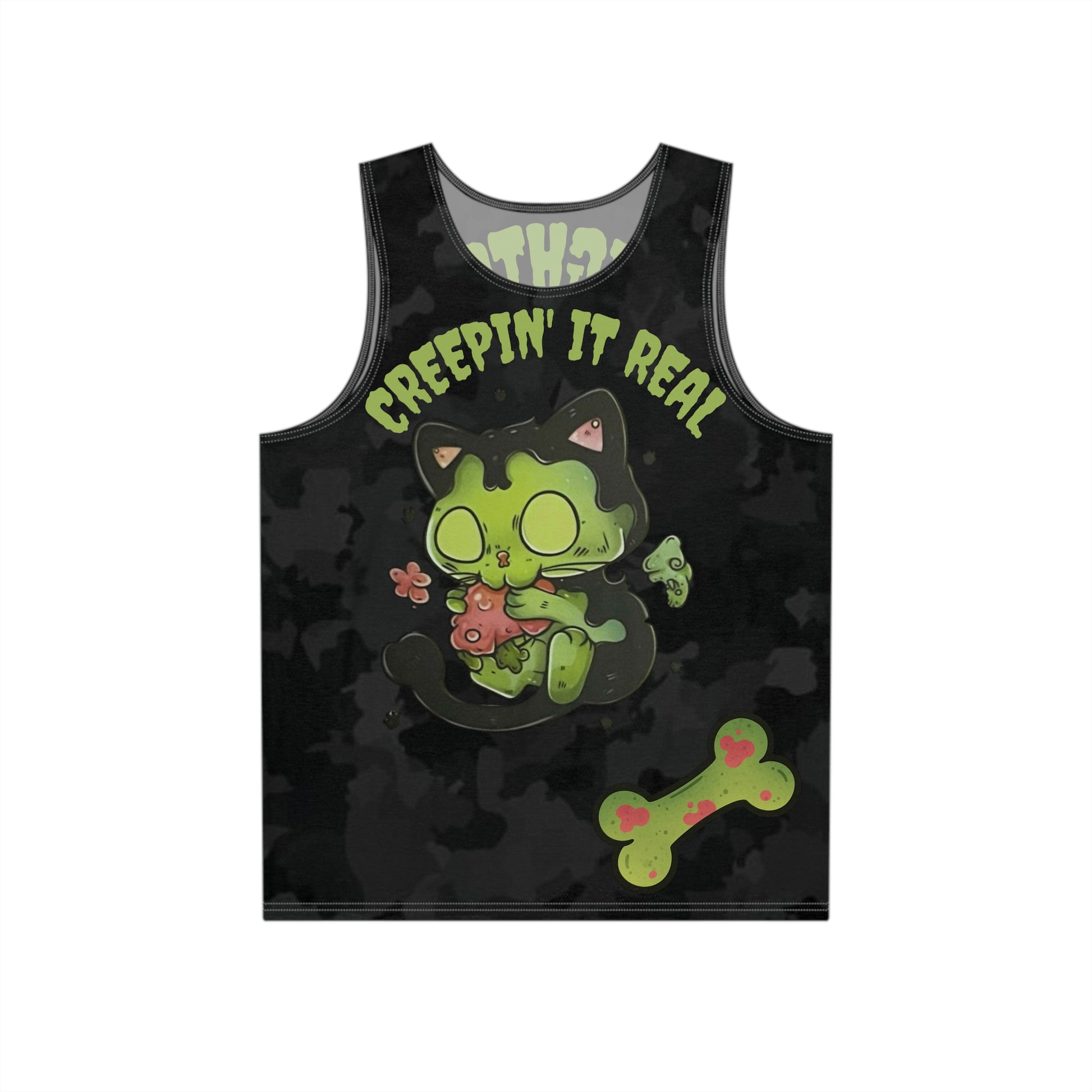 The Frightcat Camo Tank is made from soft, breathable polyester, it’s lightweight, flexible, and built for movement, whether you’re pushing through late-night reps or running from your past. The black camouflage print gives it a sleek, shadowed look, while the vibrant green Frightcat emblem adds a flash of unholy energy. With durable stitching and a comfortable, relaxed fit, it’s made to survive every set.