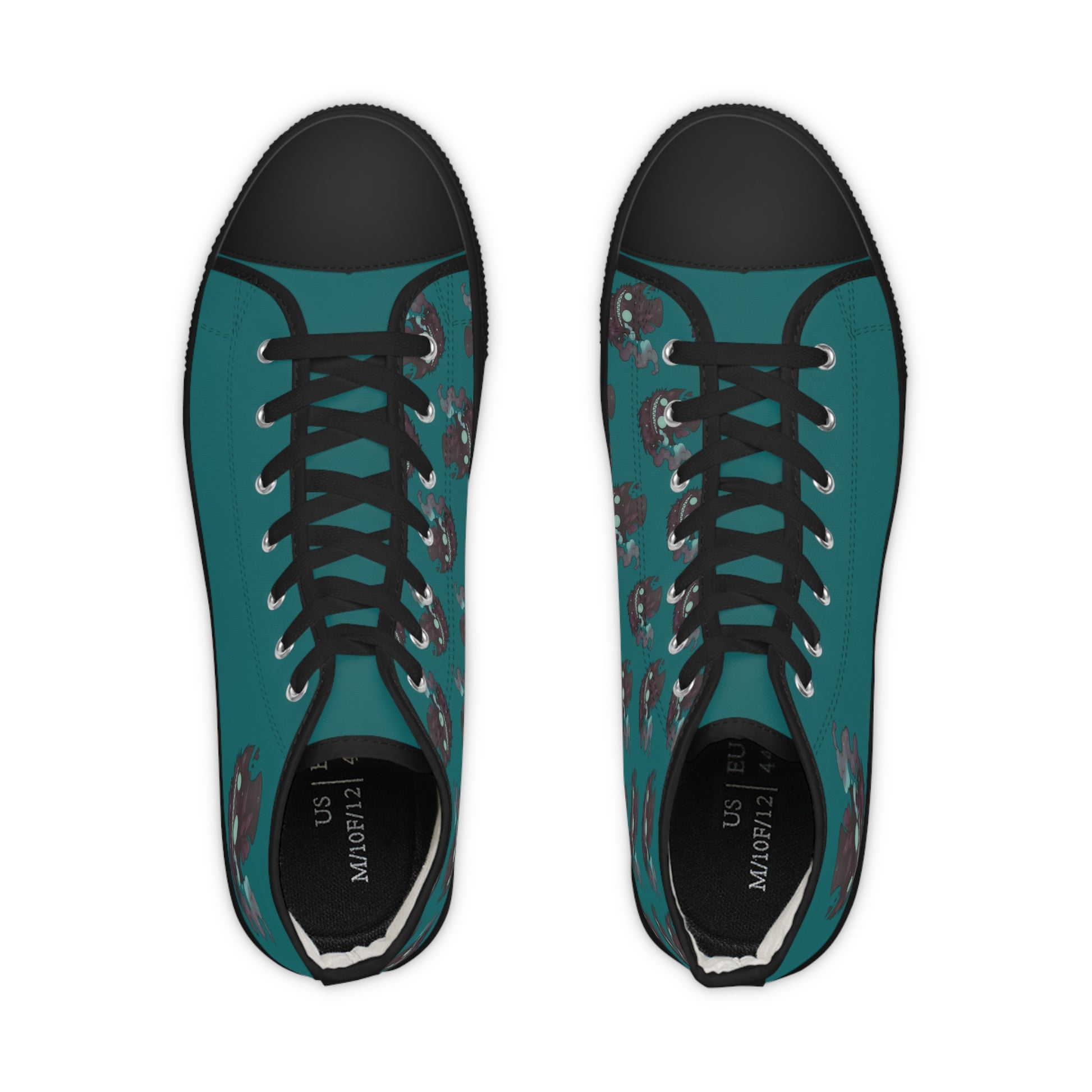 Made with breathable polyester canvas and featuring hi-poly deodorant memory foam insoles, these high top sneakers for men bear all the marks of an awesome shoe. Choose between black or white sole and laces, and enjoy the silver metal eyelets along with the lace-up closure. Add your designs and bring a bespoke staple to life.