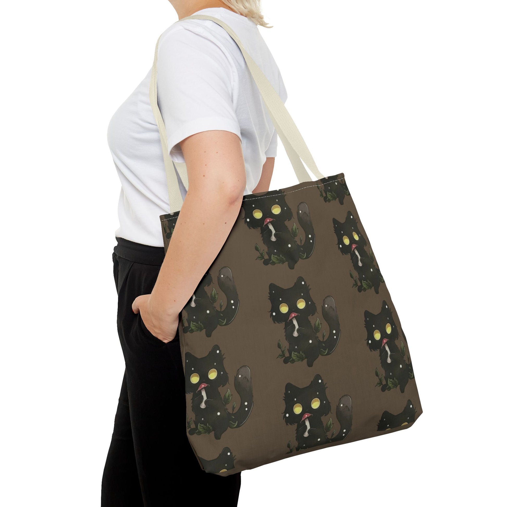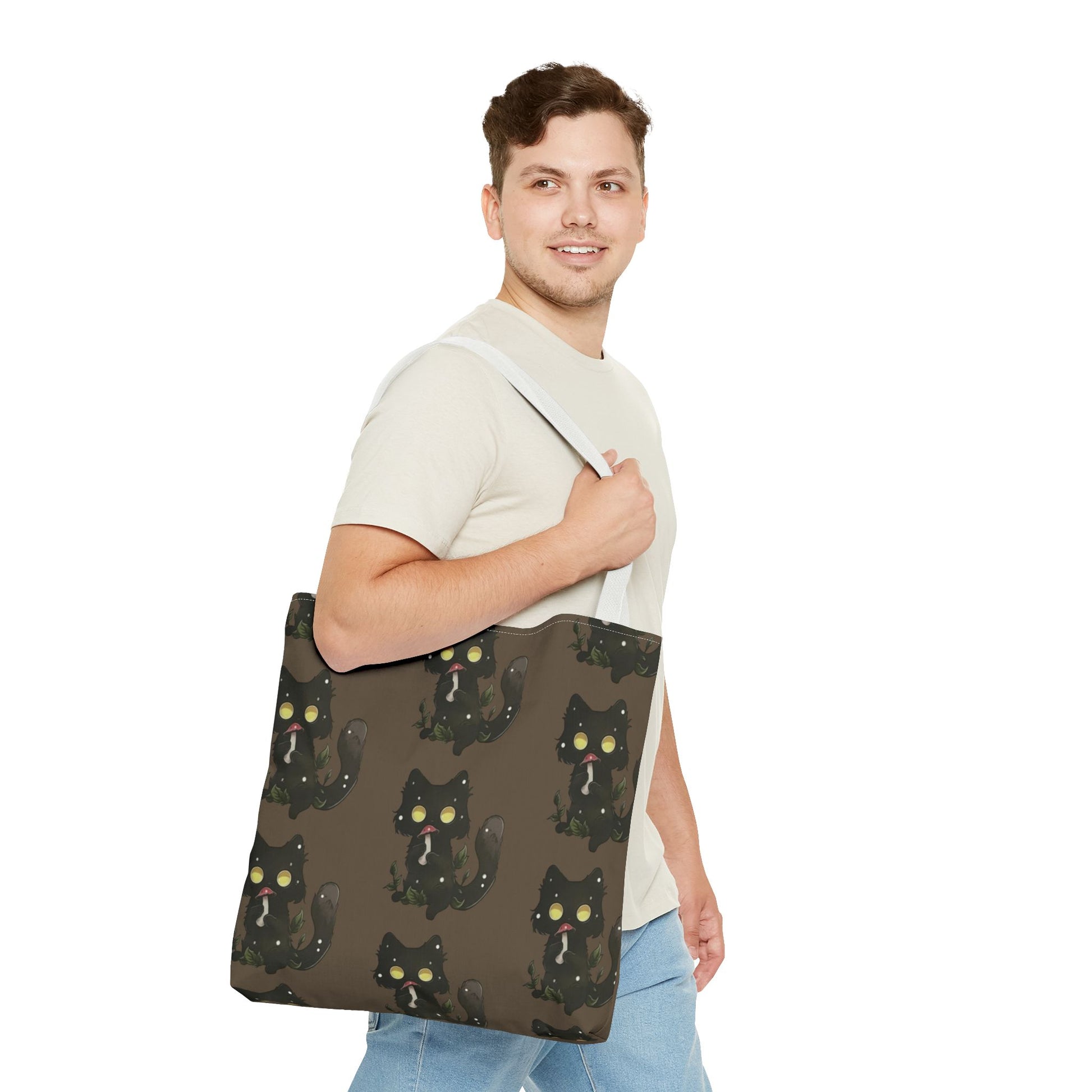 Carry your chaos in style with the Black Cat Tote Bag — a spooky-chic essential for lovers of witchy fashion and Halloween charm. 🖤 Featuring wide-eyed creepy-cute cats, this durable all-over print tote is perfect for book hauls, crystal runs, or everyday enchantment. Designed by Mythical Yote, where the weird and whimsical collide. 🌌 100% polyester with cotton handles, 5 color options, and 3 sizes. Size tolerance ±0.75" (1.9 cm).