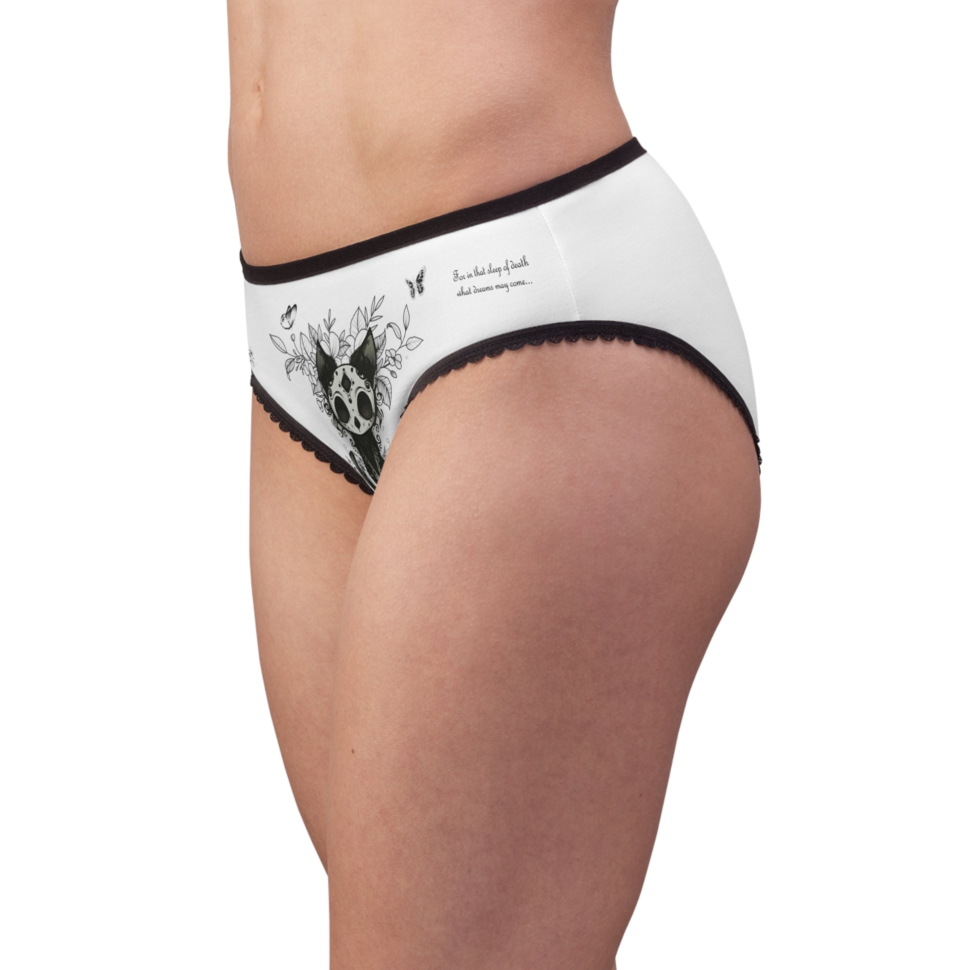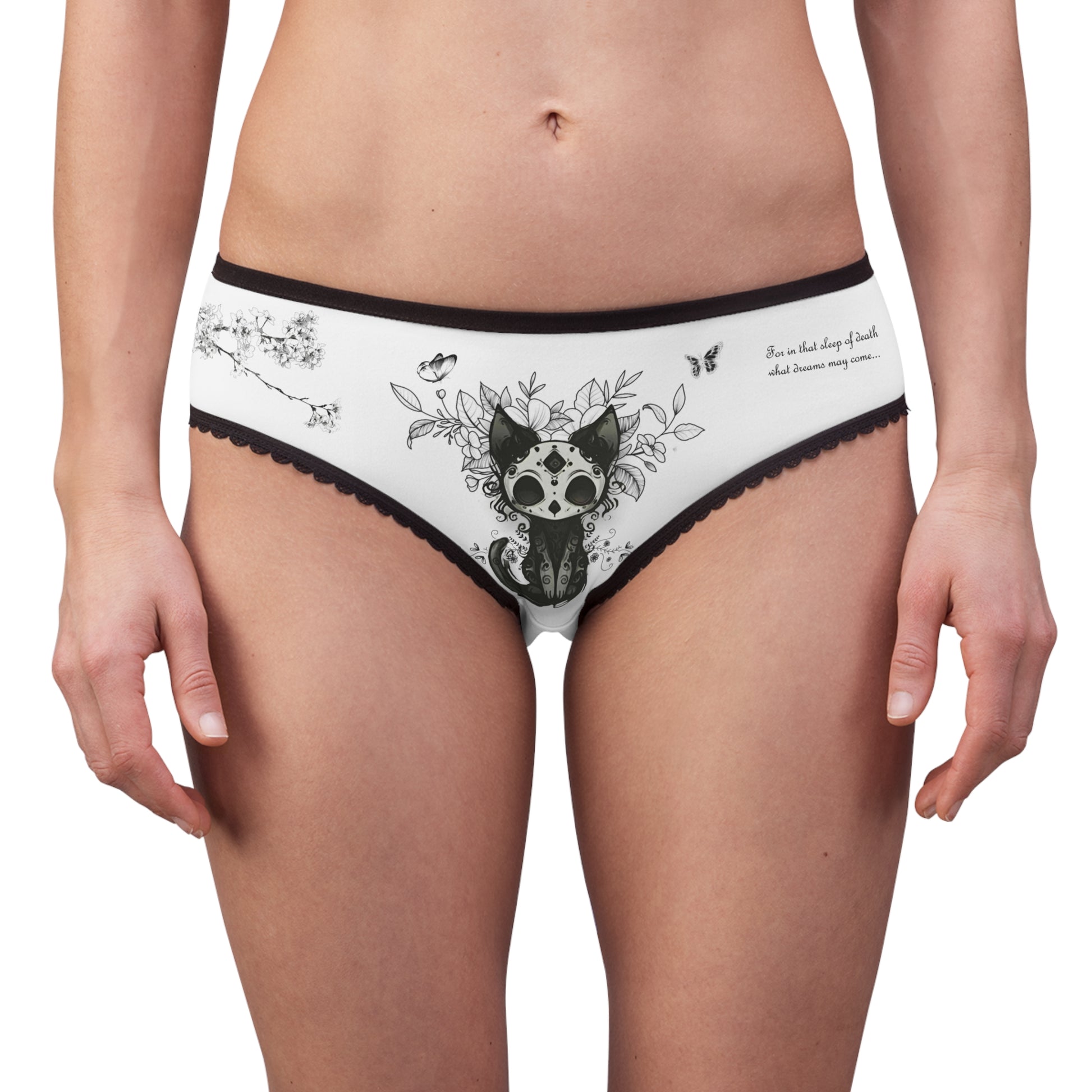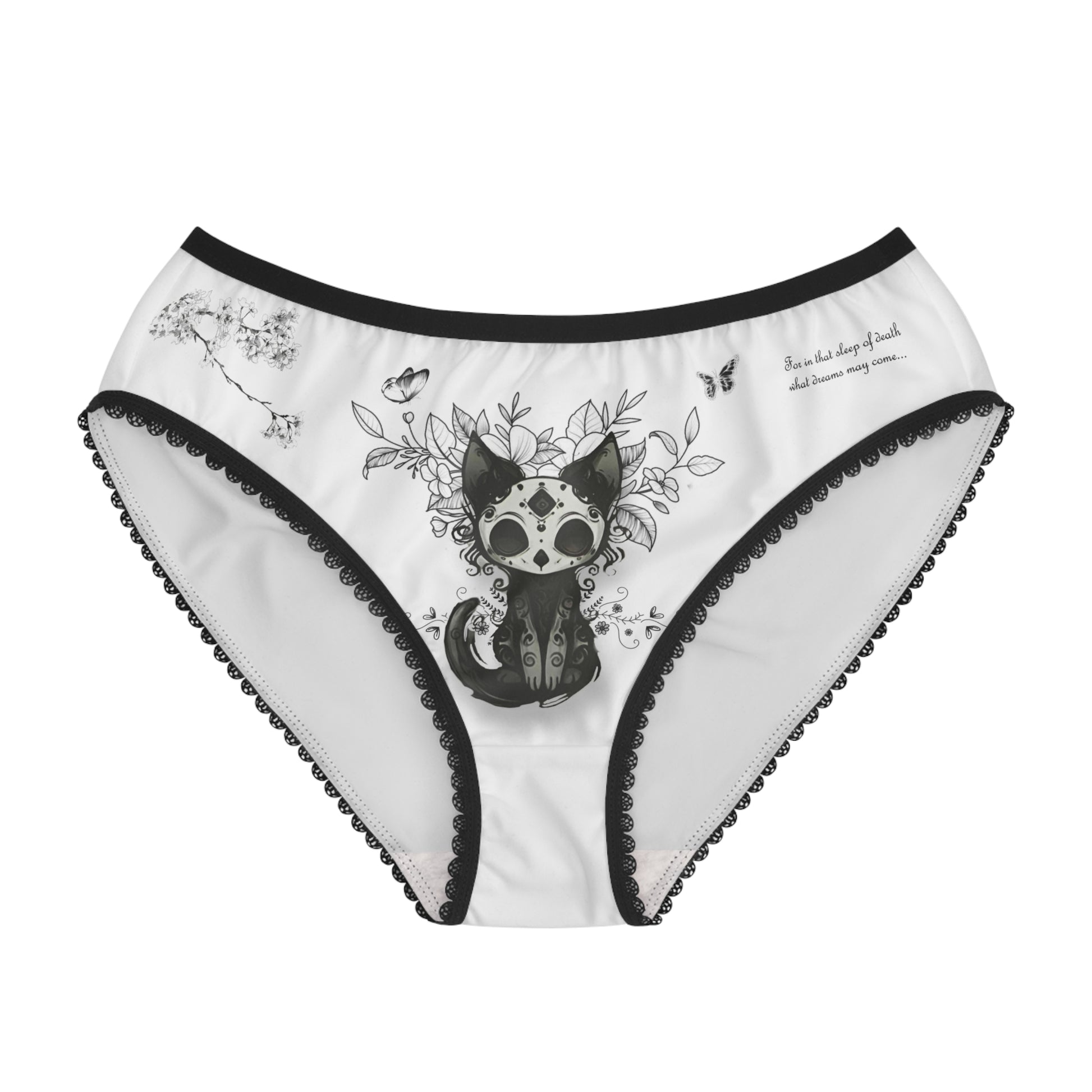 Embrace your darkly divine side with the Gothic Women’s Underwear — soft, spectral, and spellbound. 🖤🐾 Featuring a sugar-skull black cat surrounded by ghostly florals and butterflies, this piece whispers the haunting verse “In that sleep of death, what dreams may come…” A perfect mix of comfort and allure for witches, poets, and creatures of the night. ✨