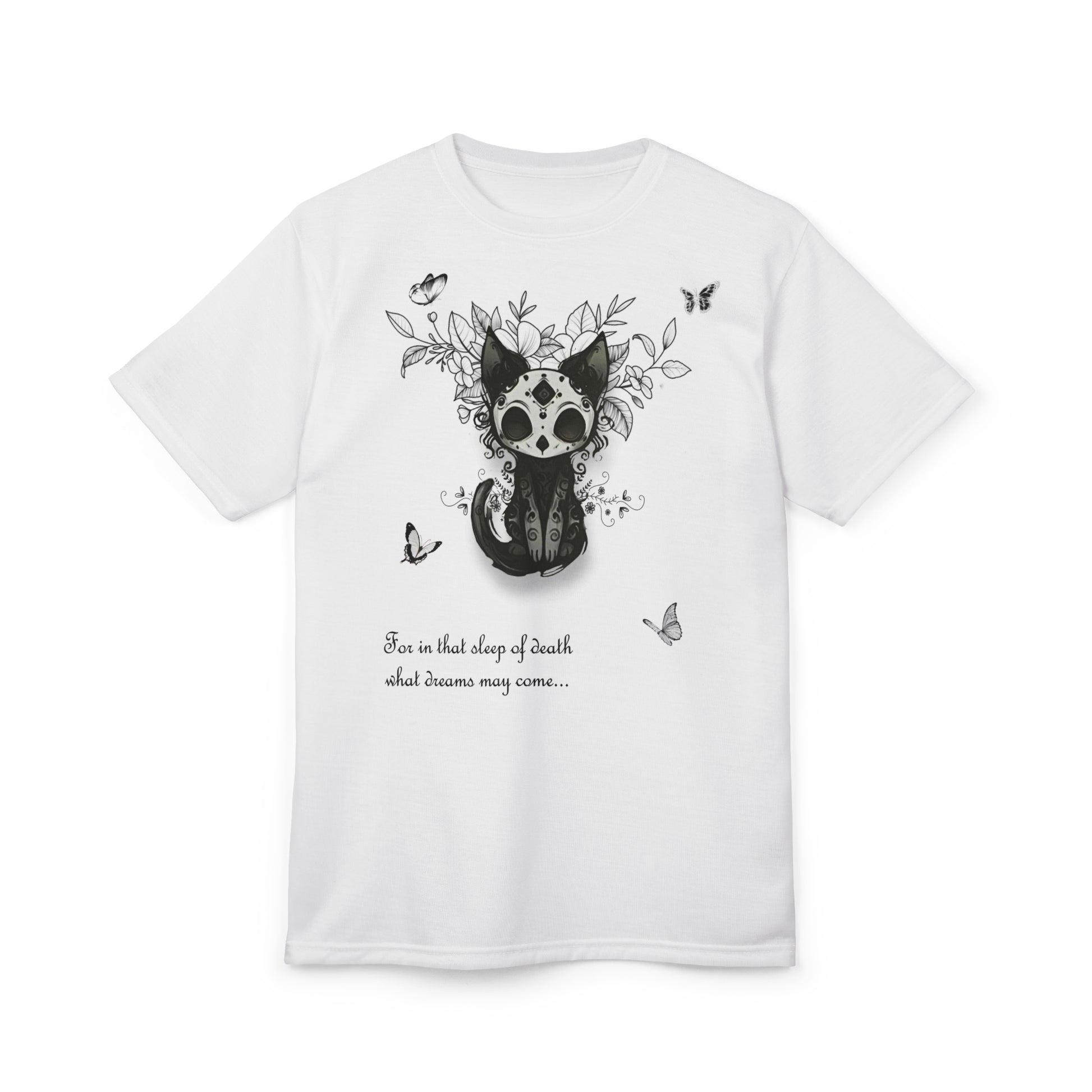 Descend into elegance with the Noir Purgatory T-Shirt — where darkness becomes art. 🌑🐾 Featuring a spectral black cat in a ceremonial skull mask and the haunting line “In that sleep of death, what dreams may come…”, this monochrome piece blends gothic romance with dark academia allure. Perfect for moonlit musings, rainy-day poetry, or quiet rebellion.